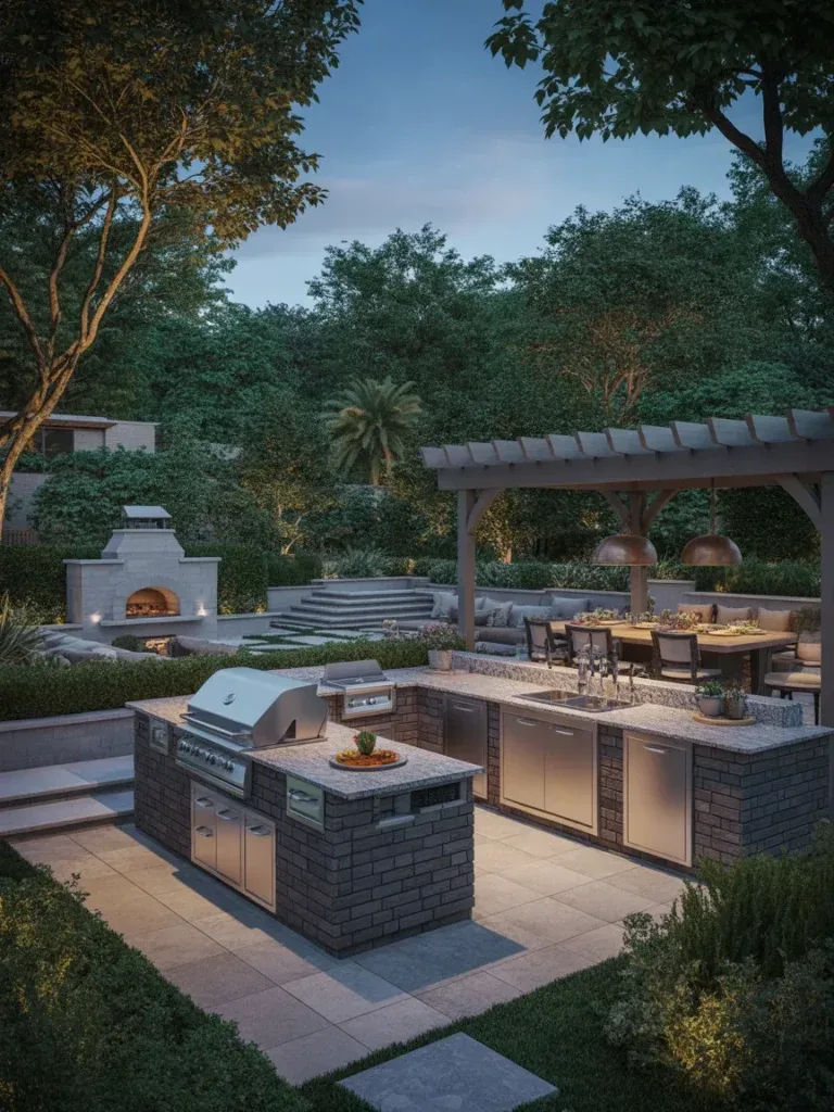 7. Pergola-Covered Outdoor Kitchen Retreat